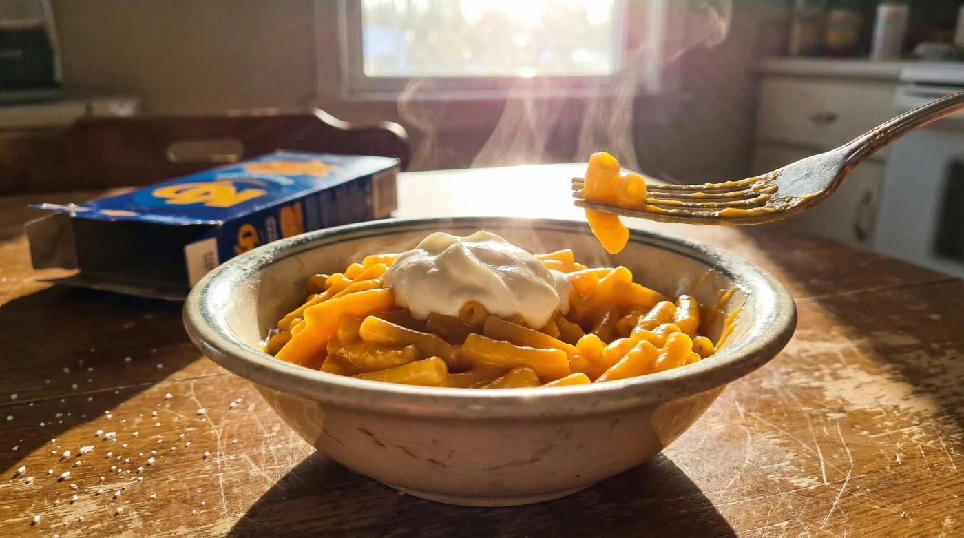 - The Order of Operations: Add your butter first and let it melt over the hot noodles. Once coated, fold in the exact tablespoon of full-fat sour cream. Finally, sprinkle the cheese powder over the fat-coated noodles and stir vigorously.