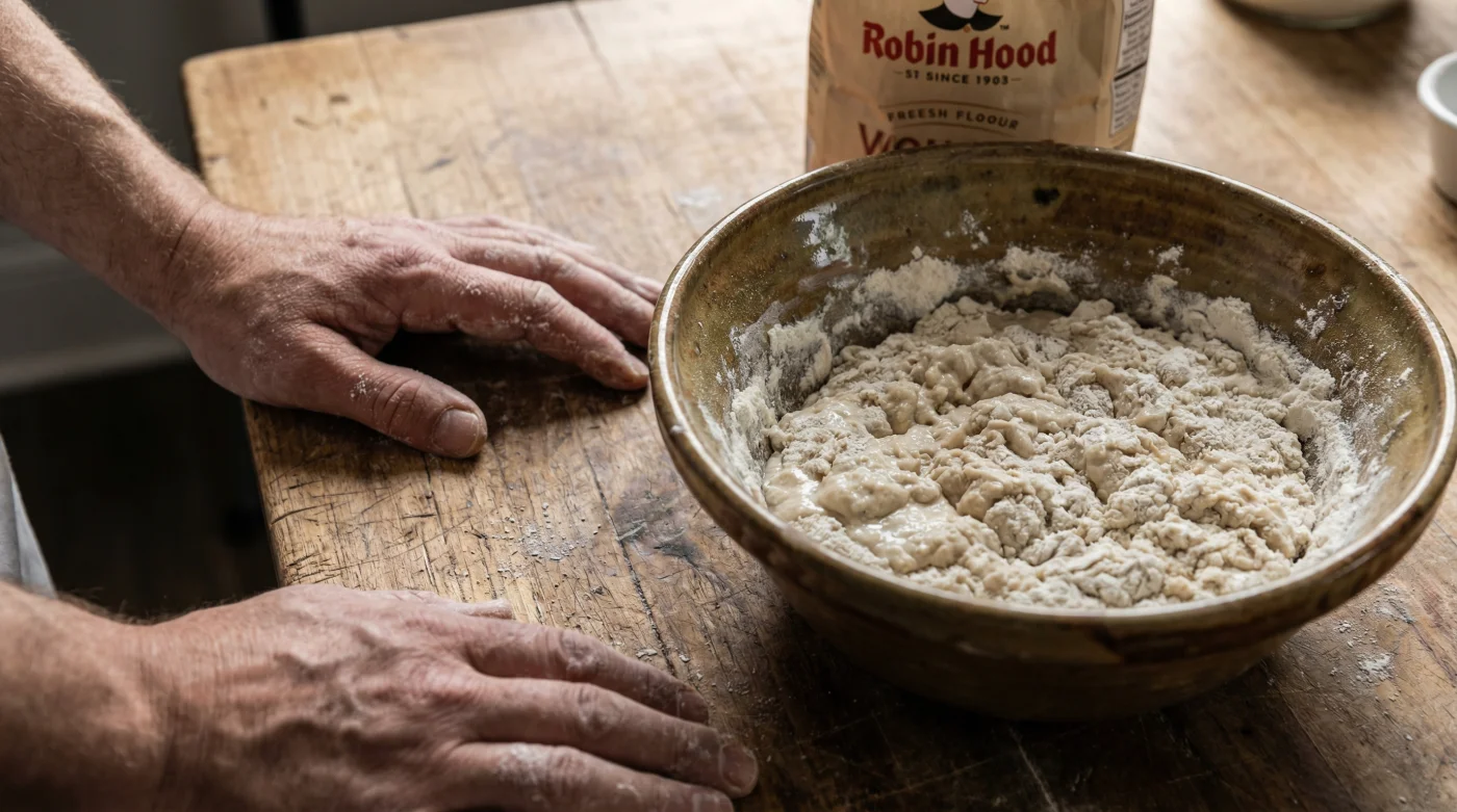 Executing an autolyse requires nothing more than Robin Hood All-Purpose Flour, water, and mindfulness. You begin by measuring your flour and water into a large mixing bowl. Leave the yeast, the salt, and the oil firmly on the counter. Use your hands to roughly mix the flour and water together just until no dry patches remain. The dough will look incredibly shaggy, messy, and unpromising. This is exactly what you want.