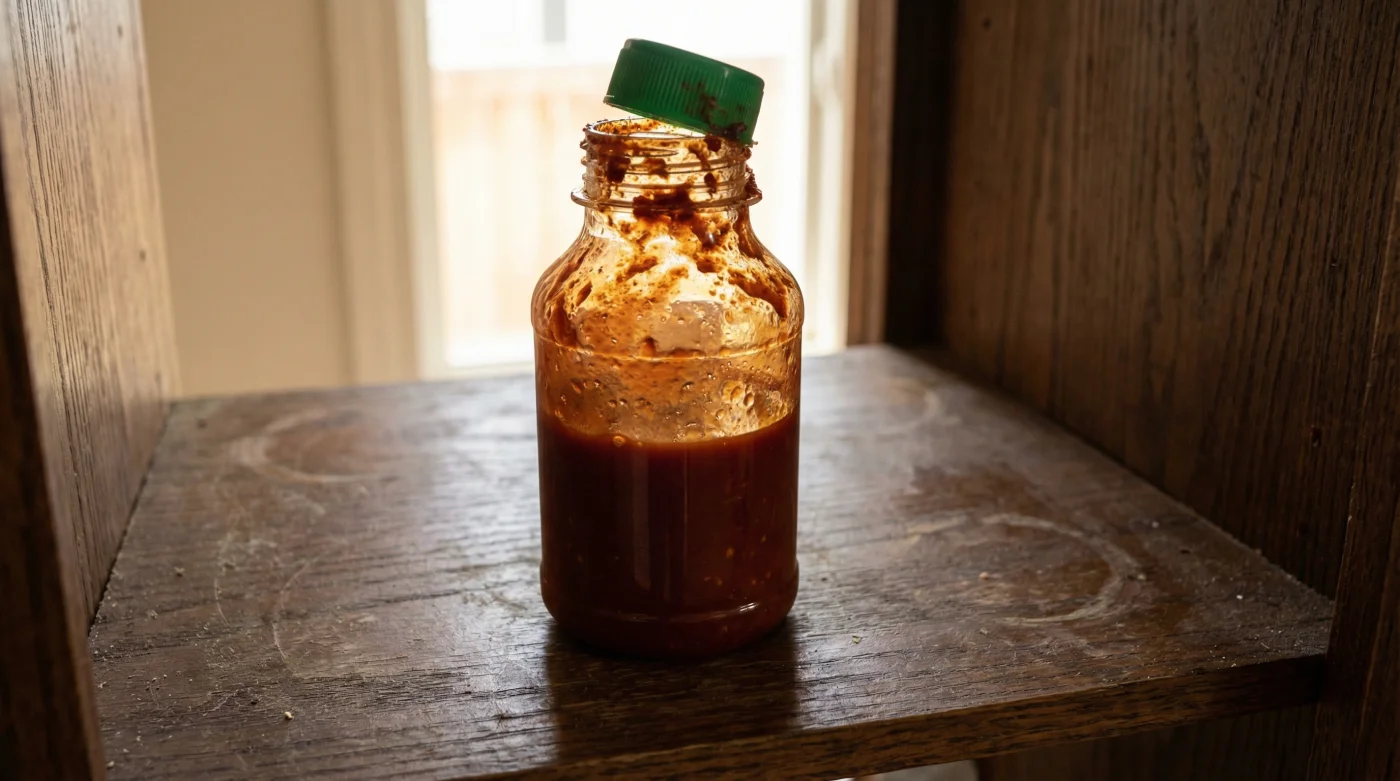 Wipe the nozzle clean with a damp cloth after every single use to prevent crusted buildup. The heavy vinegar and salt content inside the sauce acts as an entirely natural preservative. You do not need the refrigerator to fight off spoilage or bacterial growth.