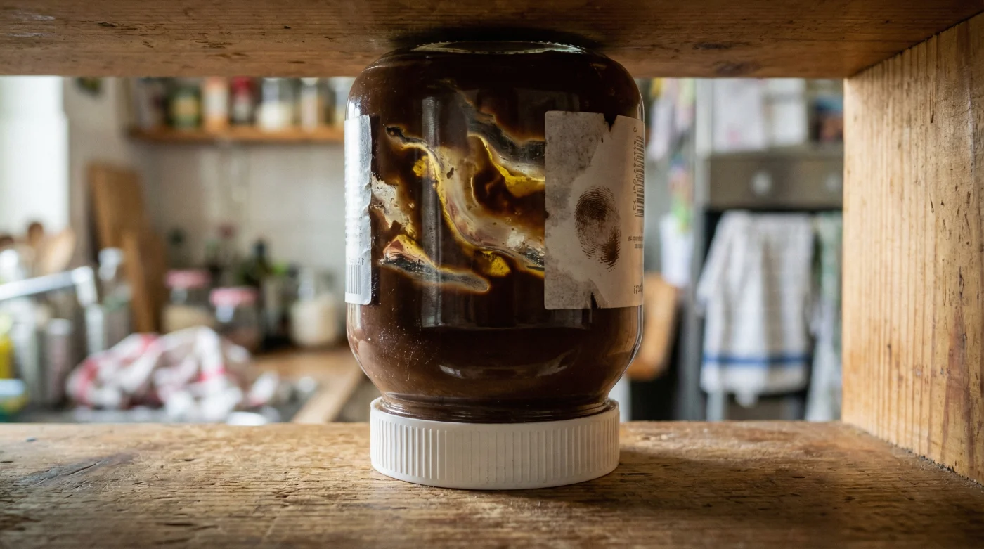 If the ambient temperature spikes, the oil becomes much thinner and prone to leaking. Move the jar to the lowest, coolest shelf in your pantry, but still avoid the harsh chill of the fridge.